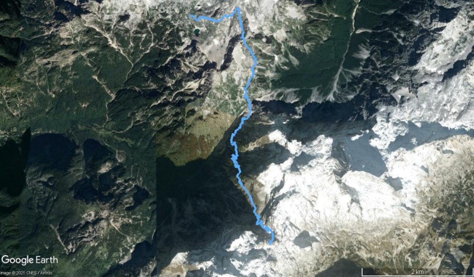 Für mich ging es erstmal wieder lange nach unten. Anfangs rutschig, dafür wurde ich aber mit dem ersten Edelweiß der letzten drei Wochen belohnt. Und das Glück war noch nicht aufgebraucht - fünf Minuten später war es gleich ein ganzer Strauß davon :-) Für mich immer wieder eine unheimlich faszinierende Blume… Mit einem Lächeln im Gesicht ging’s dann hinunter zum Luknja-Pass. Dort wurde der Weg deutlich besser, auch wenn es immer noch weiter hinab ging. Ich befand mich auf einer alten Militär-„Straße“. Ich würde es eher als abgestützten Weg bezeichnen, aber angenehm zu gehen war er trotzdem :-)
